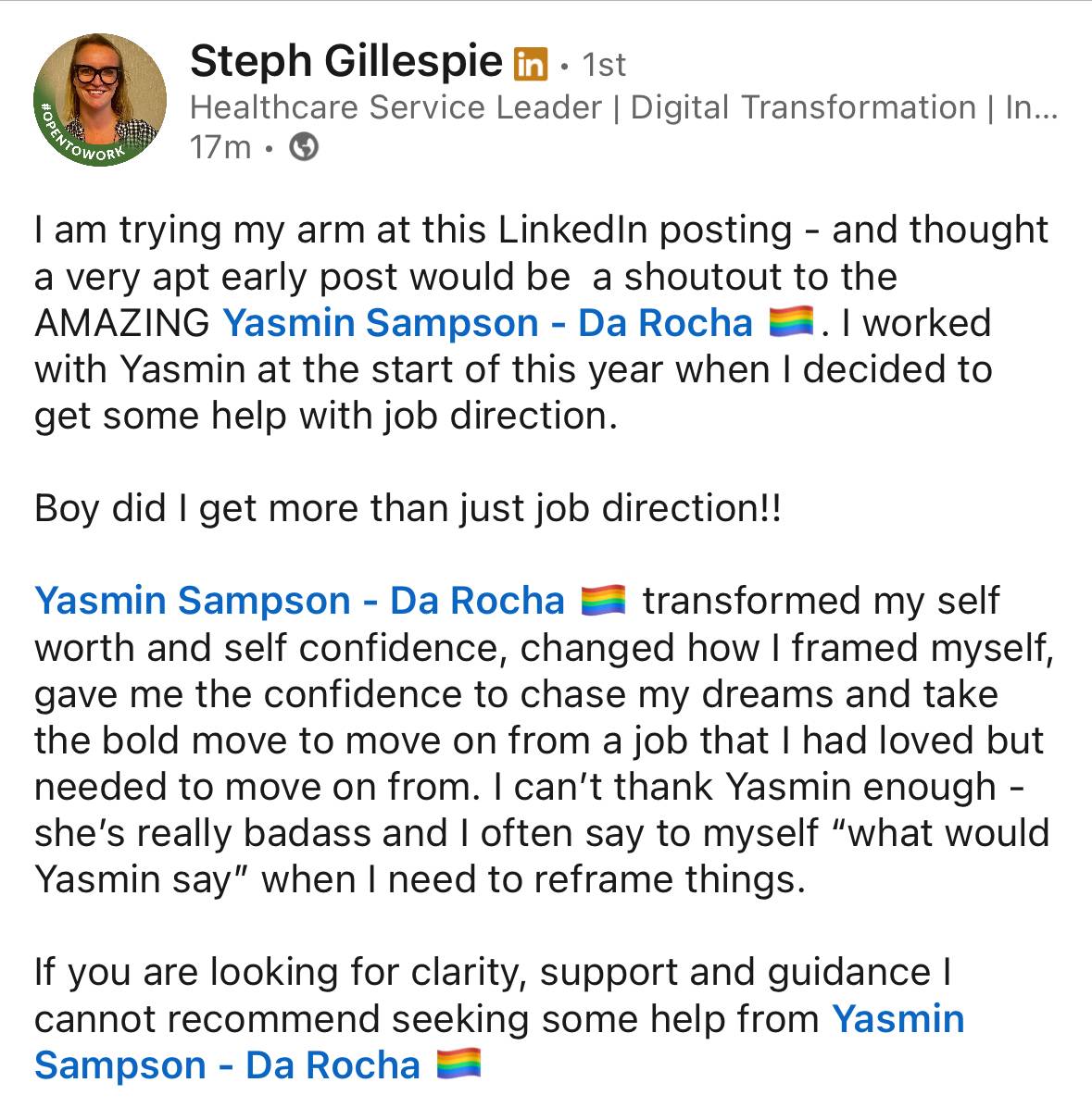 That's what we do in UNTAPPED - that's why you're in for 6 months so you have support in the messy middle after you have made your career decision and through the process of stepping into your next career path.